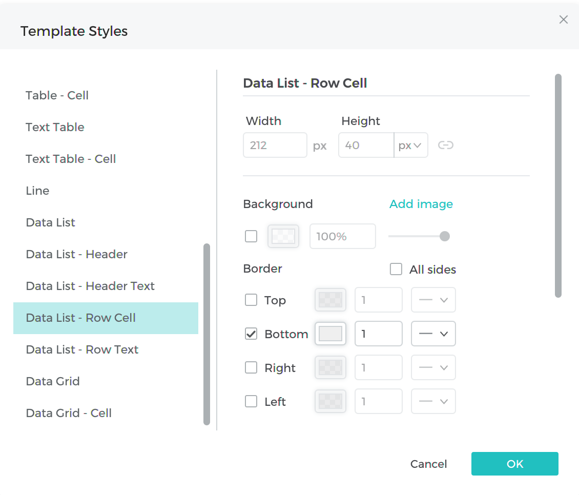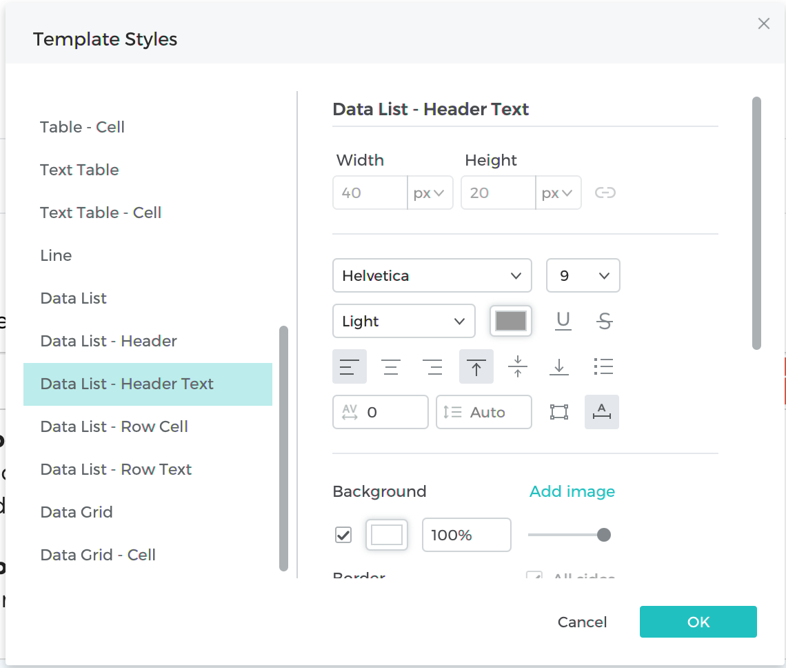 Hello - I've created a data list, and modified the default style properties for font size and colour - however now the default sizes are disabled for height and width.