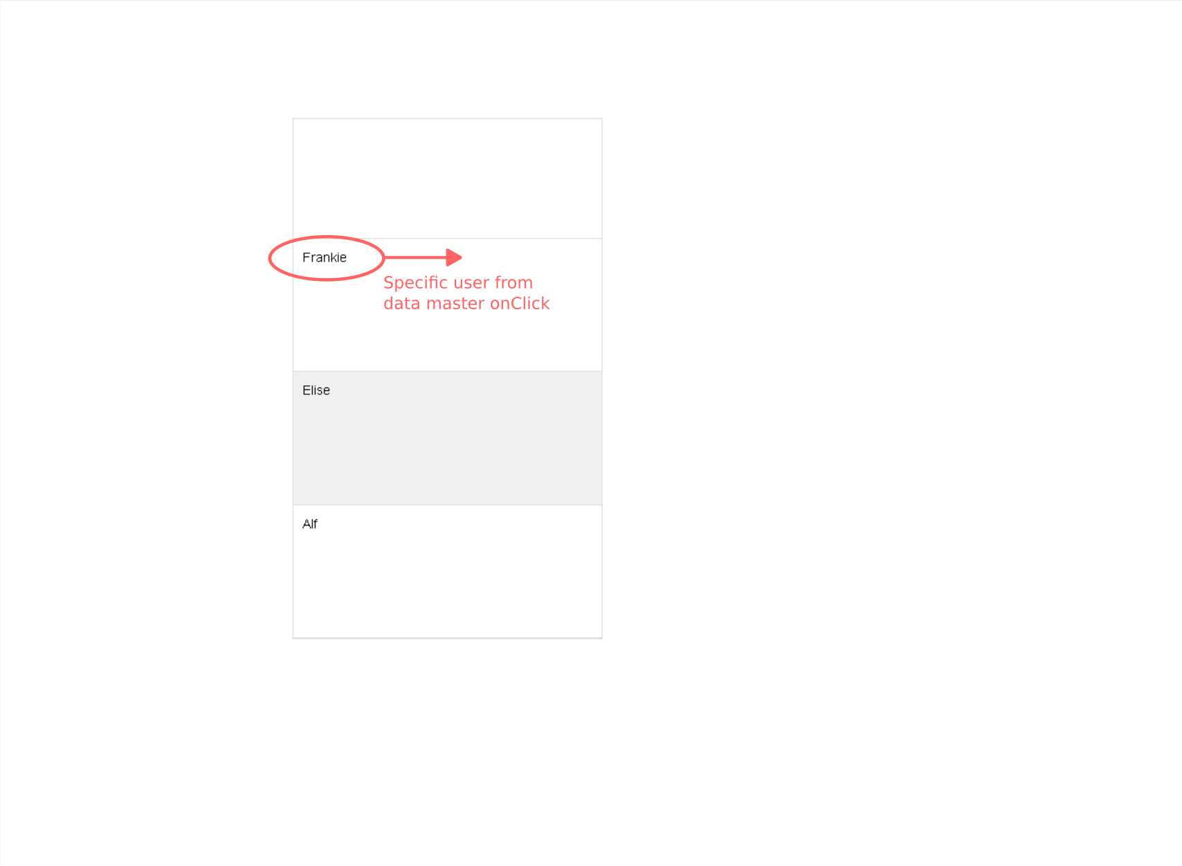 Having a list of users from data masters on one page, which onClick leads to a profile page of the specified user (the profile page is a template page with data master data dynamically set depending on the information passed onClick).