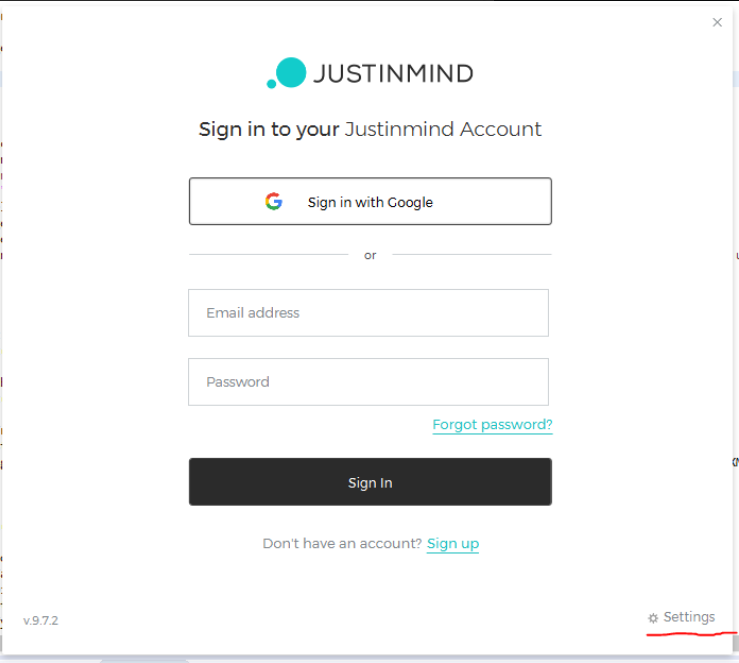 I have no access to the settings link. If I launch Just in Mind I get the message in attachment 1. By selecting the left link I get the page in attachment 2. By entering account details I get the page in assessment 3. By selecting settings on the top right of the page I get attachment 4.
