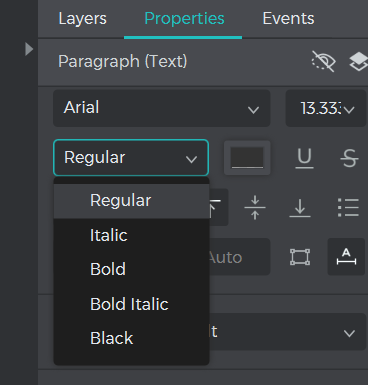 I only see selections of Regular, Bold, Underline. and LIne Through, but how to make text italic?