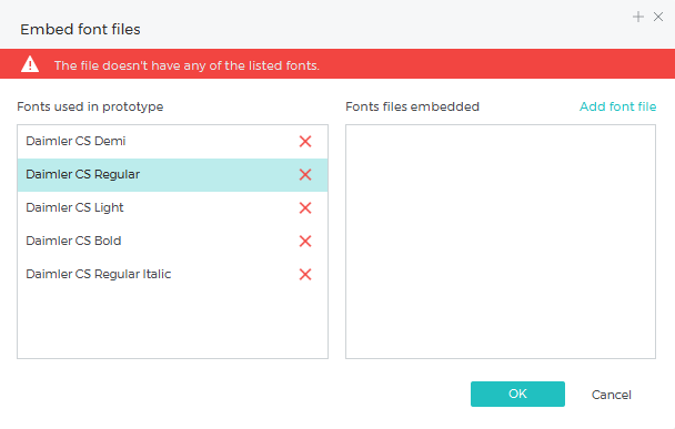 Hello, I am using a custom Corporate font in my prototype. It is installed on my system. When I publish my prototype, JiM correctly identifies it as a custom font that needs to be embedded.