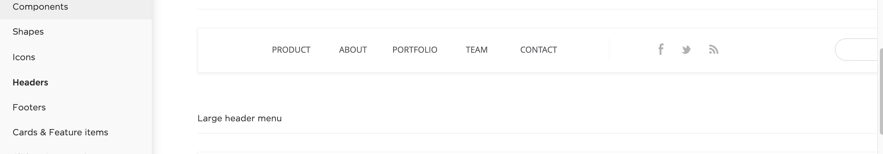I just downloaded the app and I can't find the headers (main nav menu). I mean, I find "header" in the menu, but it shows hero section, see 1 attached image. I'm looking the component shown in the 2nd img.