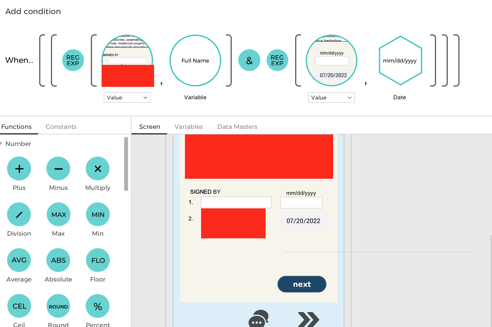 I'm having a problem with a condition working. I've used the same formula on a different screen and all the forms need to be filled in before it allows you to go to the next page. However, when I've copied the conditions to this screen when I click next, it goes to the next page. Even when the form boxes are empty? I can't see what I'm doing wrong.