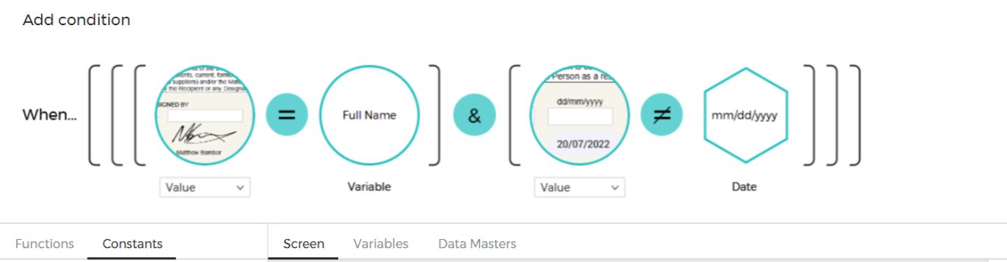 Hello, I send you a ss, here you can see the condition in which it is required that the name is the same as the sign in and the date is the current one.
