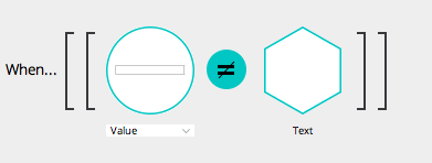 Hi, I have several form fields on my screen and want to add a condition that the active button isn't shown until all the fields are filled out. How can I do this? I can't see how I can set a condition saying 'last field ≠ empty' Do you have a visual example of these conditions in the conditions panel?
