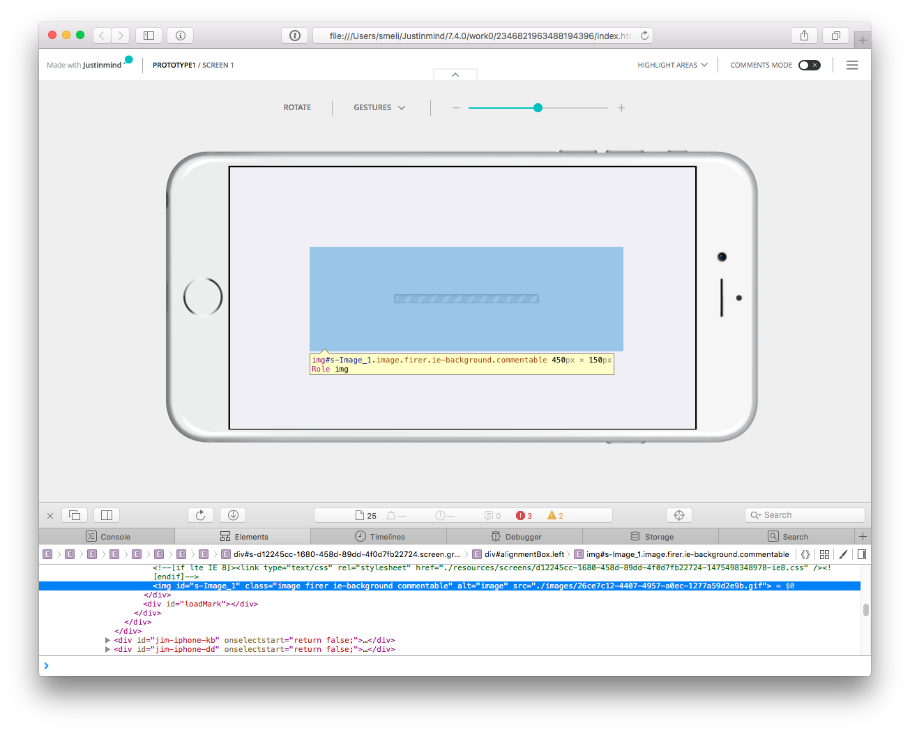 You can see it running here: https://dl.dropboxusercontent.com/u/628429/justinmind/animatedgif/index.html