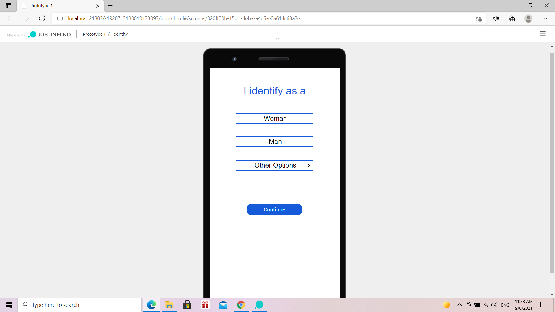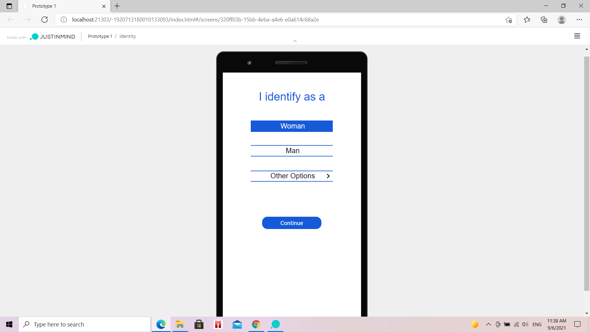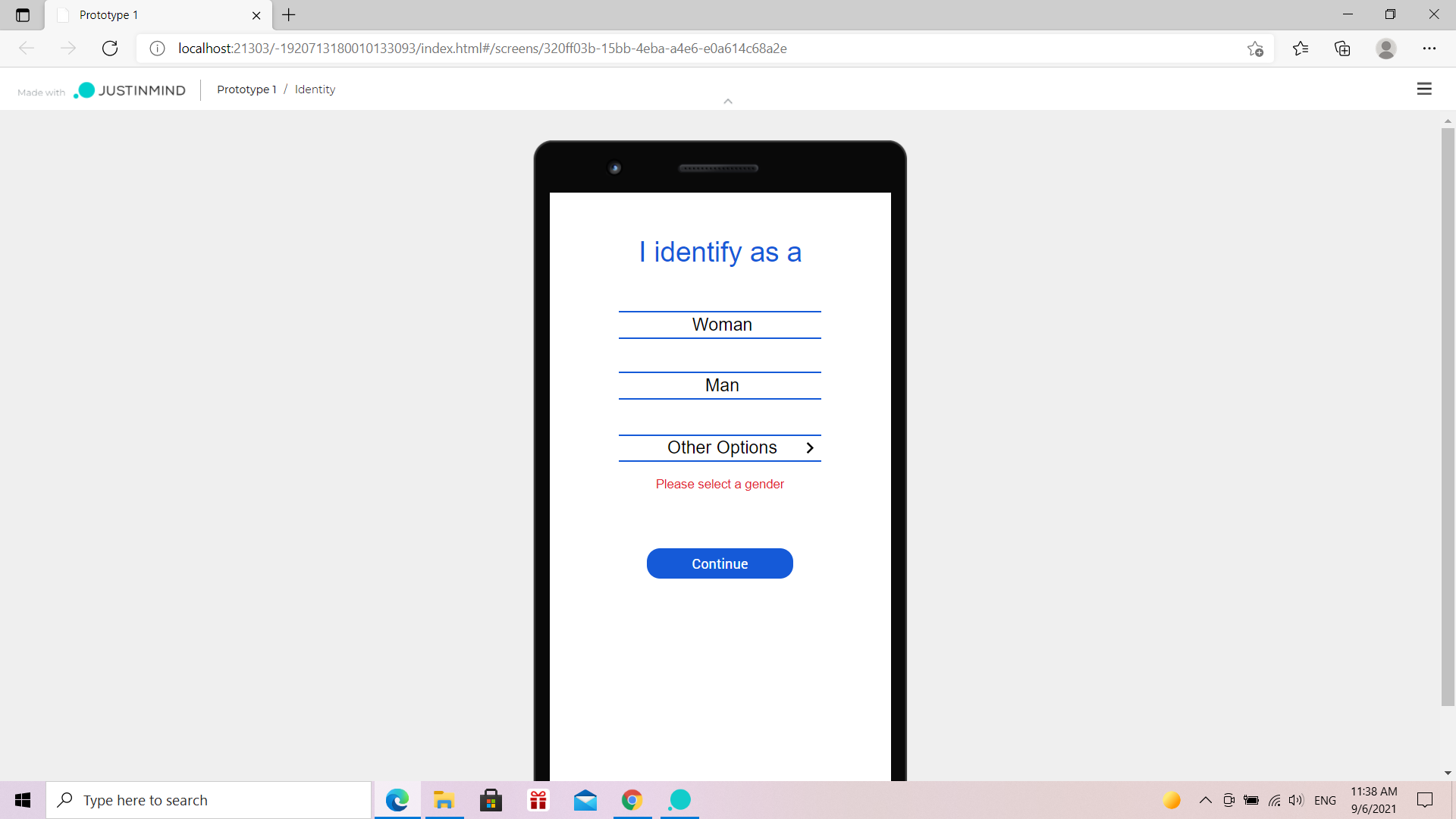3. If no element is selected and I press the CONTINUE button the red text shows up
