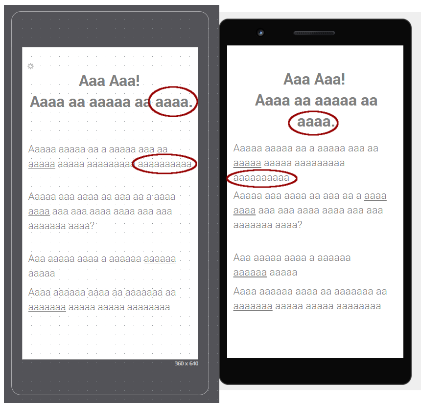 The content displayed on the screen in the design view does not match the display in simulation. This changes the spacing between elements.