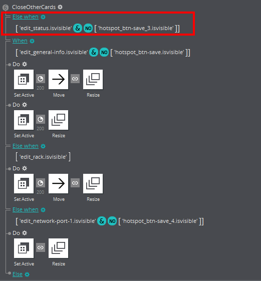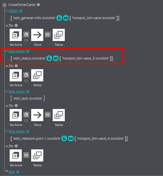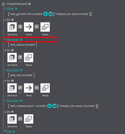 When defining a complex interaction, pasting "Else when" conditions (with or without adding an action) in the Event viewer often seems to cause the conditions to become out of order in the Events viewer, and separated from the associated actions. It is very distressing as you think you have lost your work!