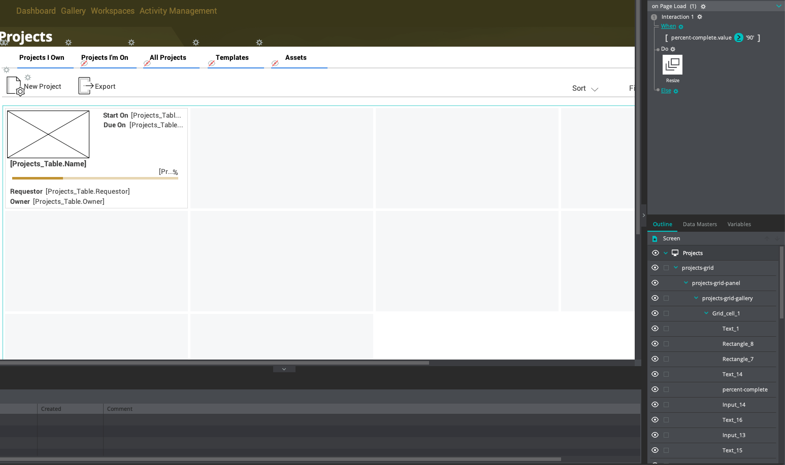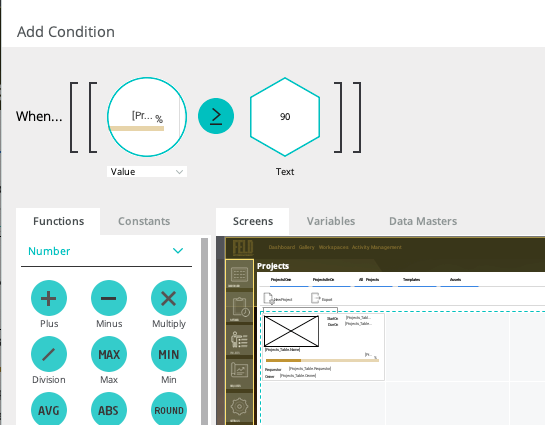 I am trying to apply a condition for resizing a progress bar (percent complete), based on the value of data grid element.