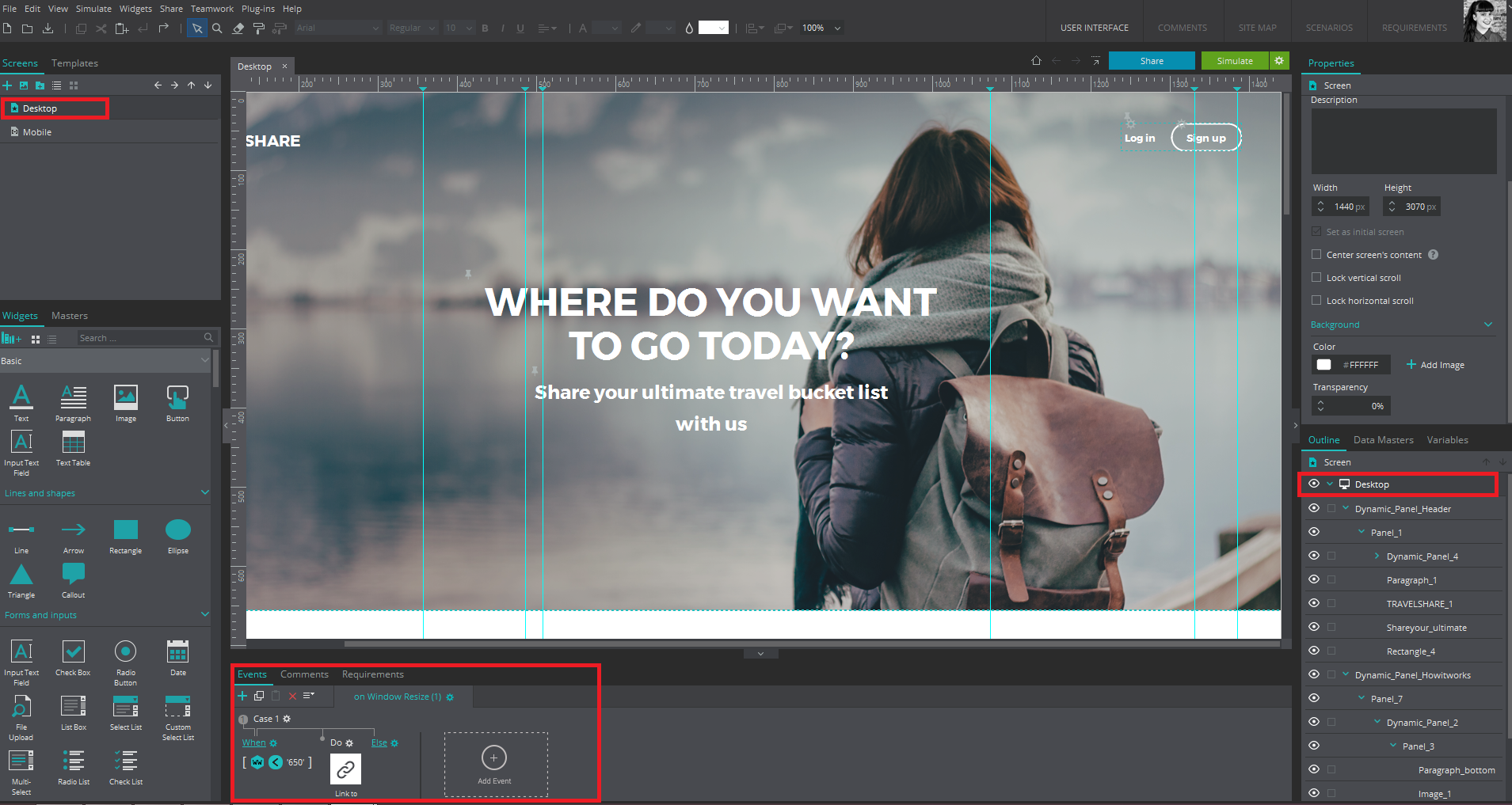 Sorry for our late response. The attached screenshot shows the main event that you will need to add in your prototype. Hope this helps.