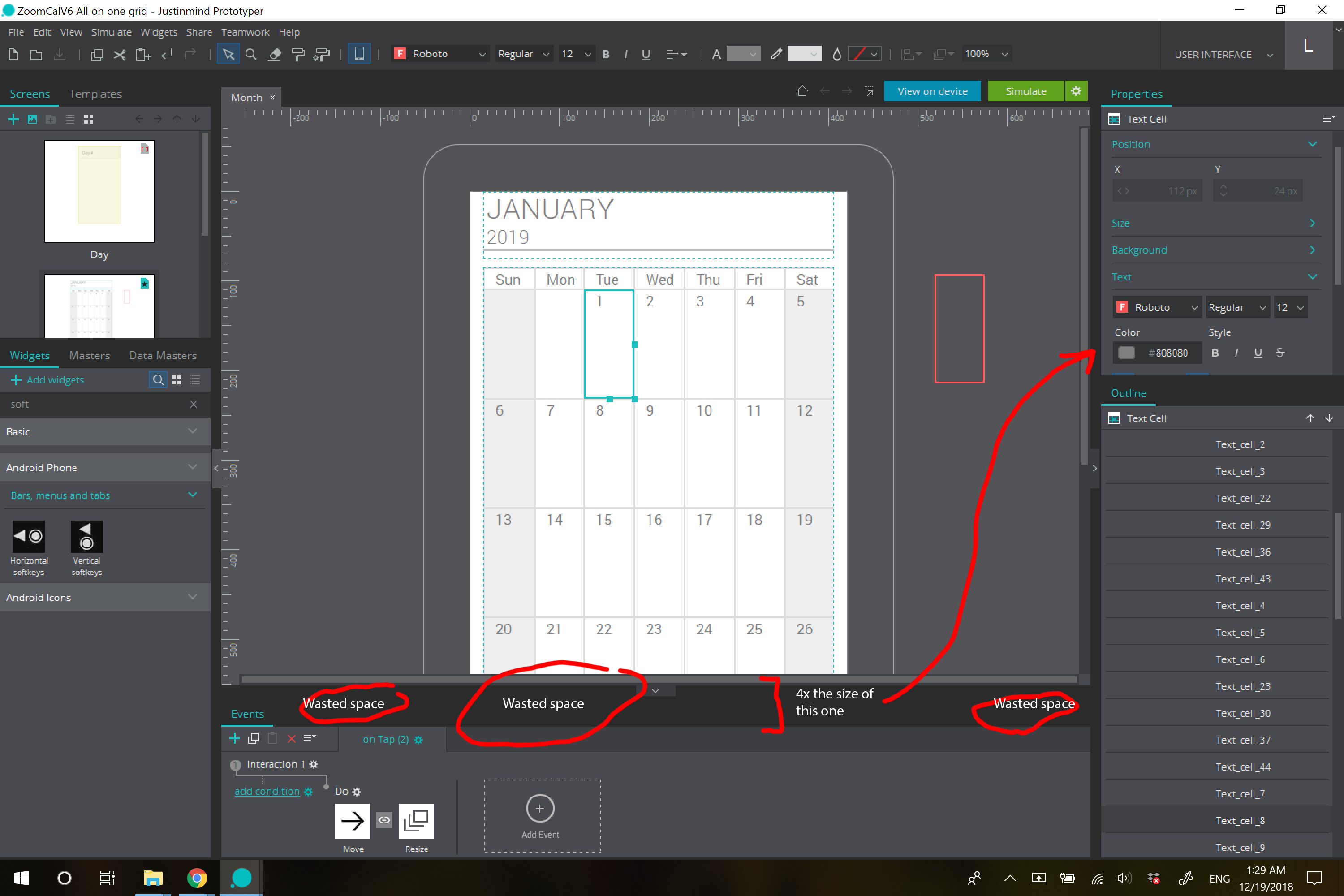 Optimize screen space by reducing wasted space in events arrow menu
