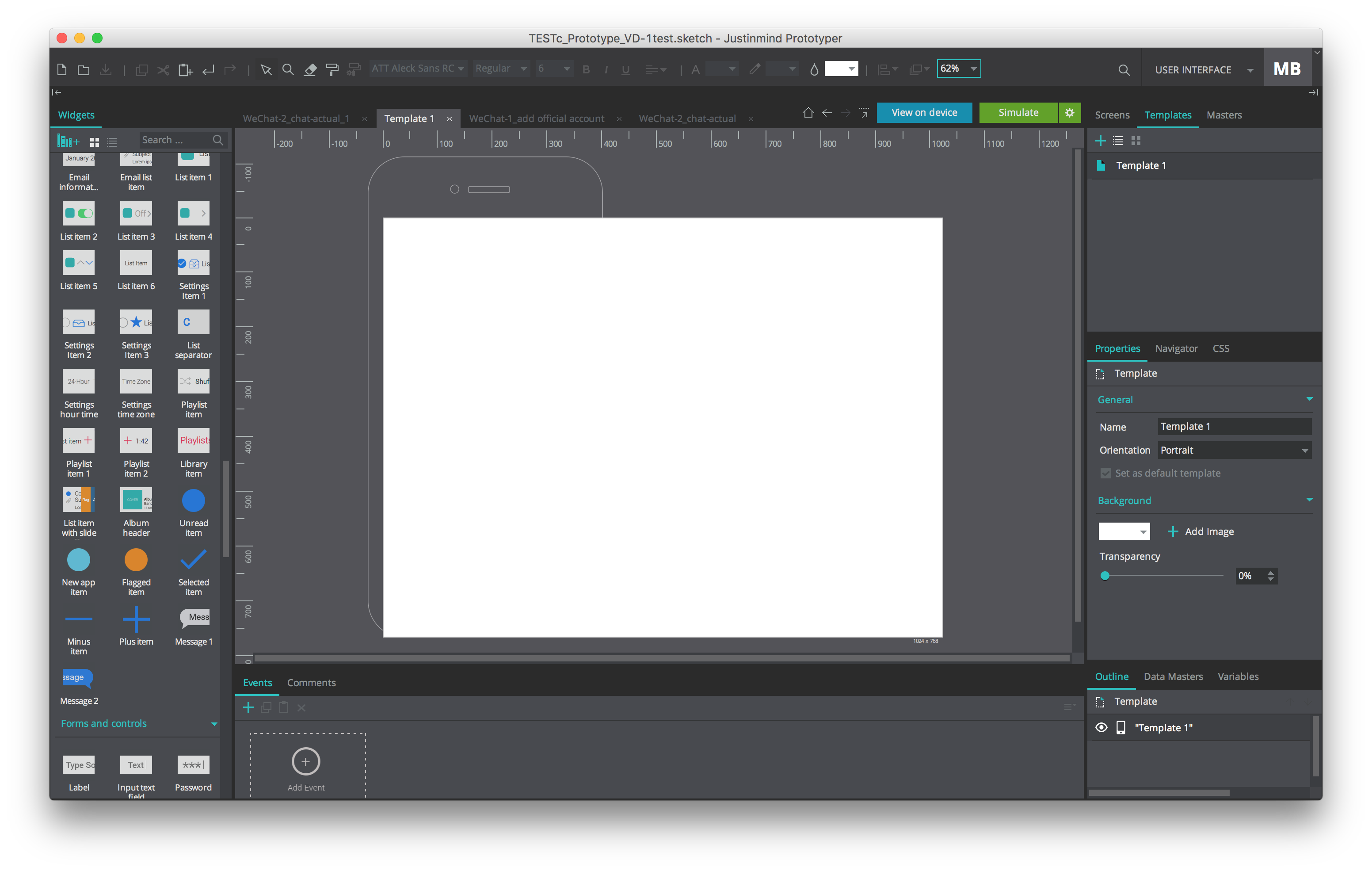 (Note: the JustinMind file I'm working on was originally made by exporting from the Sketch app using their JustinMind plugin)