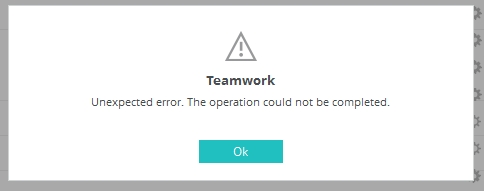 "Unexpected error. The operation could not be complted"